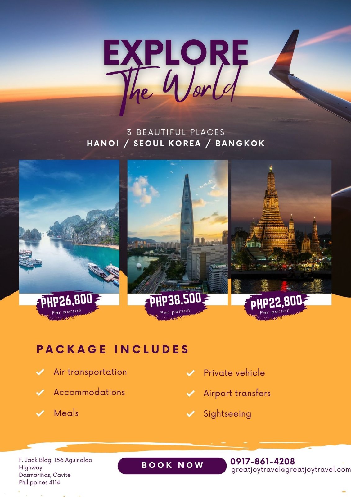 Greatjoy Travel & Tours International (GTTI) offers flights, hotels and other related services worldwide. We are a partner and member of leading travel agencies globally . Greatjoy offers the cheapest rate, lower than the airline rates. It provides domestic and international flight ticketing and hotel reservations from the leading airlines and hotels worldwide. It also offer tour packages, car rentals, visa and passport assistance, customize field trips, travel insurance, bus tickets and other related services. Greatjoy envisions to be one of the leading travel agencies worldwide.